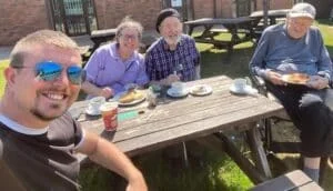 Our Lutterworth branch’s Care and Training Practitioner Heather, and carer Rob, took two of their customers to a beautiful canal-side café in their local area for some much-needed time outdoors. Bert, who’s 97 years young, and Vince who’s living with dementia, live near each other but had never met, so when the opportunity arose, they were thrilled to get out and meet one another.